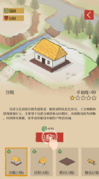 1、玩家要搭建民居、作坊等各类居住及生产设施,对村落的空间排布进行科学规划,以此提高村民的生活品质。