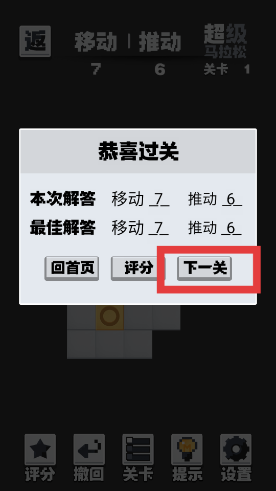 4、玩家在掌握过关思路并成功通关后,既可以选择进入下一关继续挑战,也能够进行评分并分享自己的游戏体验。