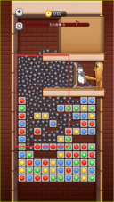 2、清除彩色方块,使石头下落,守护角色,达成关卡目标。