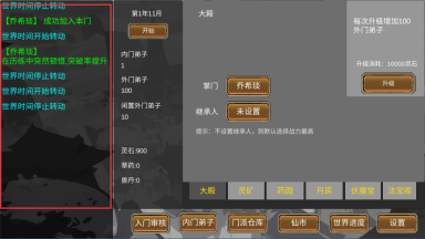 1、左侧红框为系统动态栏,该区域会实时推送关键信息,这些动态是门派发展的重要指引。例如当弟子突破时,可据此针对性分配资源以助力其成长,通过依据动态调整策略,能够有效推动门派不断壮大。
