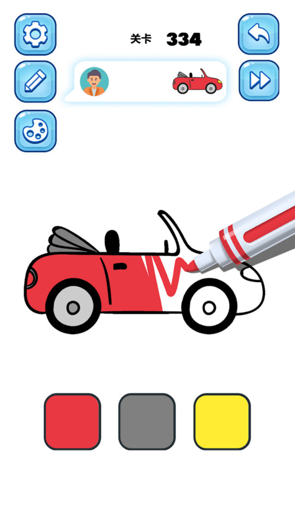 1、打开涂色界面后,点击画笔工具选择心仪的颜色,接着在线稿对应的区域进行涂抹,即可完成填色创作。