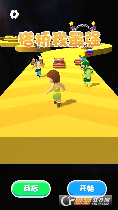 2、众多玩家一起来展开竞速对决,收集木板搭建桥梁抄近道前进。