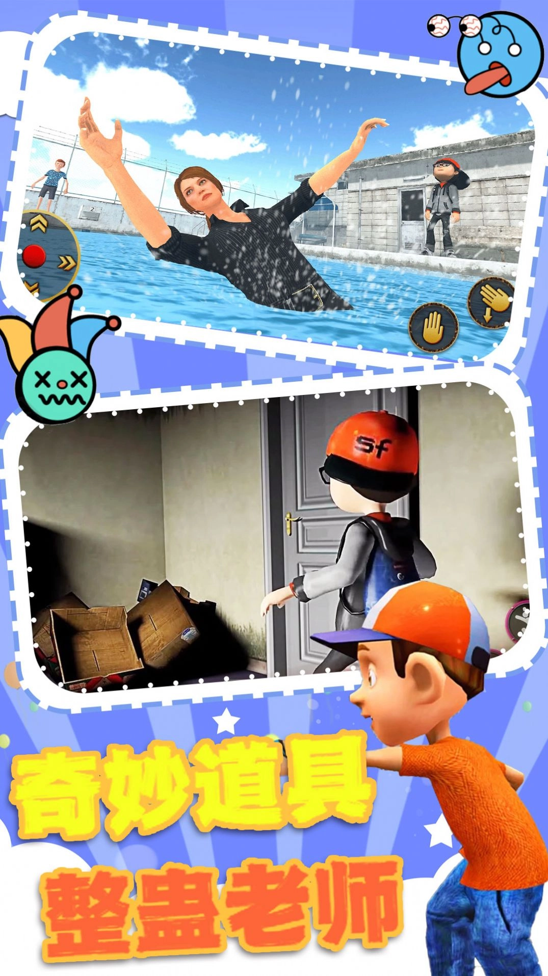 老师上课模拟游戏自由挑战各种不同难度的游戏任务,多重关卡,自由尝试,体验欢乐的游戏过程,可以随意操控卡通角色,去整蛊老师,借助各种各样的道具,设计机关、陷阱等,整蛊老师,体验欢乐减压的游戏玩法,很多任务,难度不断升级,自由尝试,带给玩家们更多的惊喜和欢乐。