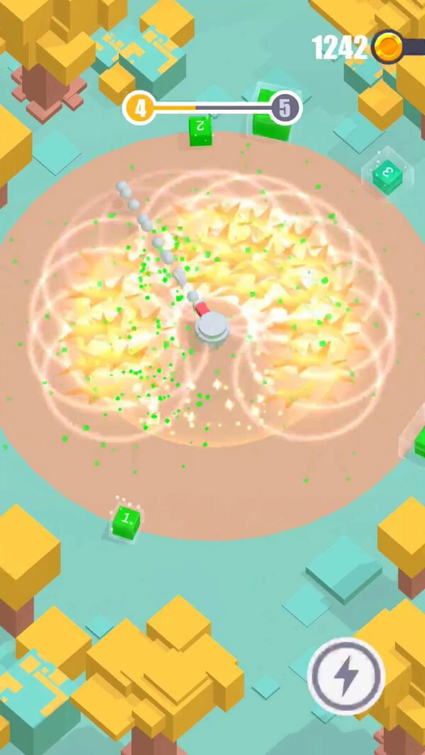 1、击碎方块,游戏的目标是获取分数,通过灵活的击碎操作来获得操作奖励。
