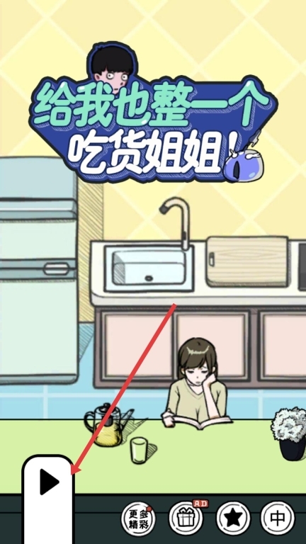 1、点击主界面左下角的播放按钮,即可进入游戏场景,开启与吃货姐姐的互动环节,大家可以根据提示来探索具体玩法。