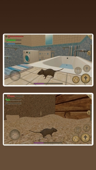 1、通过操控虚拟摇杆来控制老鼠的移动,带领它在各式各样的场景里展开探索,同时收集食物、水源以及筑巢所需的材料。