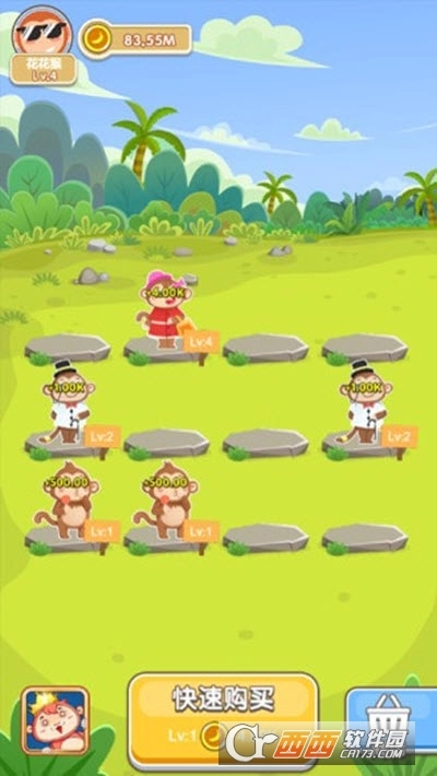 游戏的总体玩法很是轻松,喂养很多只猴子,不断的提升猴子们的等级。