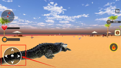 4、通过左下角的虚拟摇杆来操控鳄鱼的移动,留意右上角显示的剩余时间,需要在规定时间内完成狩猎、躲避危险等一系列生存相关的任务。
