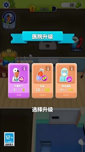 2.通过完成主线任务积累金币,用于升级急诊室和接待区,以此保障接待效率