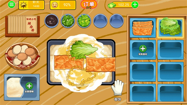 2、玩家刚开始时,会有顾客指导如何制作烤冷面,无需担心自己不会操作。