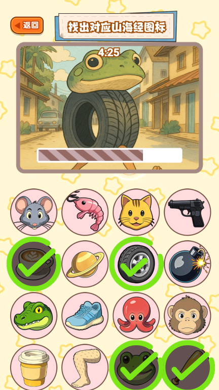 1、先聚焦角色的突出特征,像轮胎蛙这类角色,要优先锁定轮胎和青蛙相关的元素,以此缩小选择范围。