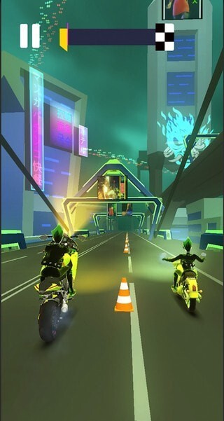 2.在比赛进行时,玩家需借助倾斜手机或触碰屏幕的方式,操控摩托车的方向与速度,避开赛道上的各类障碍物,同时和其他玩家展开角逐。
