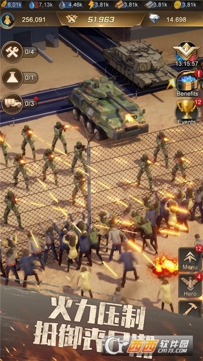 1、生产士兵、穿戴装备、提升科技、收集资源......建造与升级基地中的建筑,为自己组建一只强大的战队,去抵抗那虎视眈眈的敌人和百万丧尸军团的入侵。来吧,用策略生存下去,来保卫我们的家园。