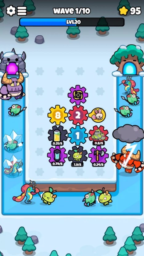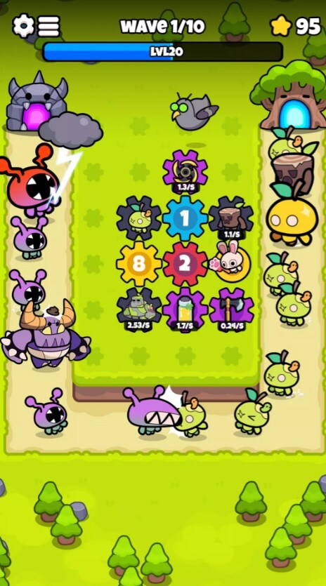 1. 运用清新软萌的卡通美术风格,玩家需通过巧妙组合齿轮来抵挡敌人的攻势,在趣味性与挑战性之间取得了良好的平衡。