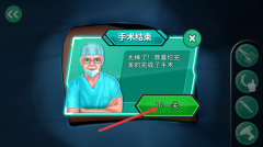 4、手术顺利完成后,系统会弹出手术结束界面,界面上会显示恭喜完成手术的提示信息,此时点击“下一关”按钮,即可开启新的手术挑战。