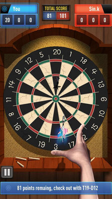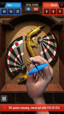 1、丰富多样的游戏关卡任你挑战,更能在线匹配真人玩家展开对战,体验紧张刺激的飞镖竞技乐趣。