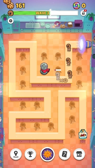 2、玩法操作非常简单,通过收集更多饼干来建造塔防设施,以此击败入侵的怪物。