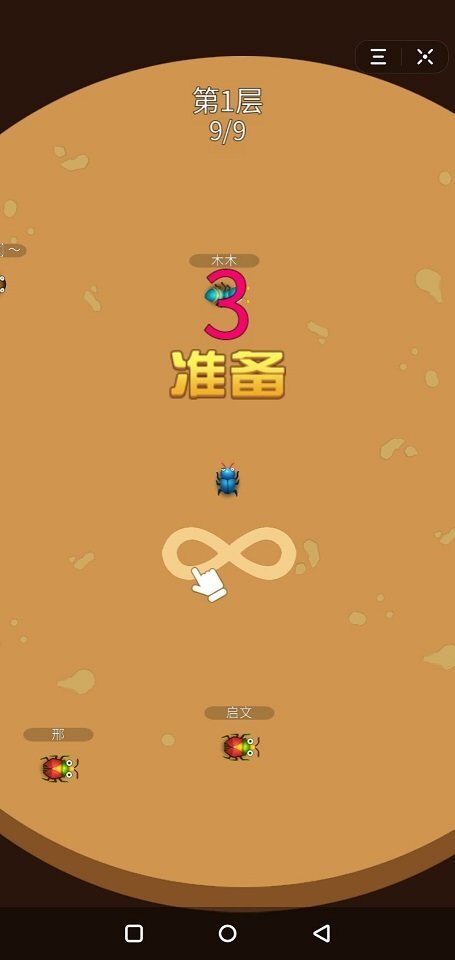 2、操控虫虫推动大球去撞击其他小虫子,只要把它们撞出竞技场就算获胜。