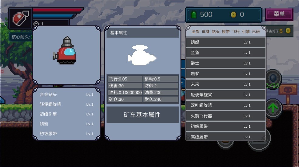 2、飞船的部件由三个部分组成,需要获取足够的能源才能进行开发。