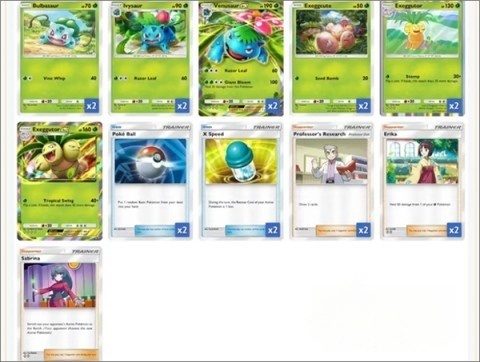 这套卡组以妙蛙花为核心构建成型,再搭配椰蛋树,有着相当扎实的下限强度。碰到这类卡组时,火系的超喷表现会比较疲软,它本身基本没什么天敌。只要没遇上特别极端的意外状况,拿下胜利就是很轻松的事。