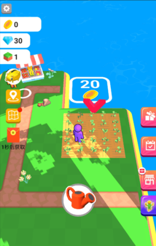 第一次进入游戏时,你会跟着贴心的新手引导,学习怎样开垦第一块土地、播下种子和浇水,完成初始任务来熟悉基本操作。