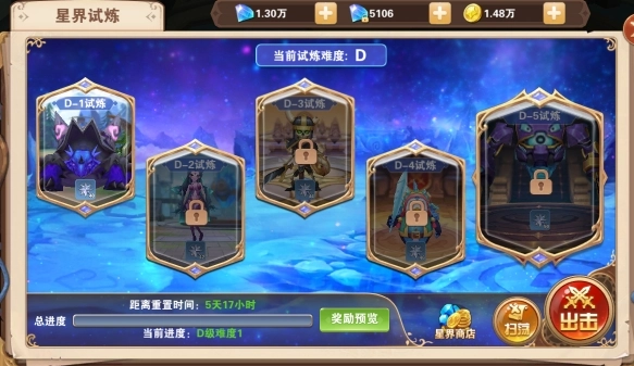 星界试炼的玩法和爬塔类似,玩家通过挑战关卡获取星魂币,这些星魂币能在星界商店兑换星灵碎片以及各类星灵相关道具,而且星界试炼每7天会进行一次重置。