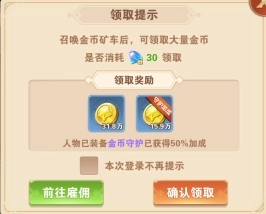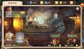 金币矿洞的玩法是雇佣矿工采矿以获取金币,游戏里的金币对装备强化等级至关重要。金币的产出量与金矿等级和矿工等级相关:金矿可用绑钻升级,等级越高产出速度越快;矿工等级越高,单名矿工产出的金币就越多,而且不同等级的矿工能同时雇佣开采。采矿时建议购买并上阵金币守护,它能提升50%的金币收益;另外,也可以召唤金币矿车,消耗钻石直接快速购买金币。