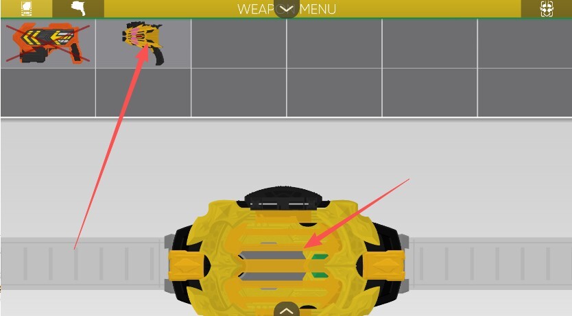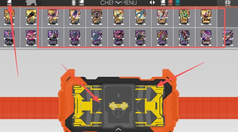 1、若要切换假面骑士歌查德变身模拟器的变身形态,需在腰带模拟器里点击选择第四个黄色的腰带变身模拟器。