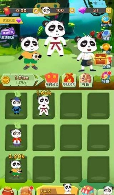放置合成解锁不同外观的熊猫,国宝为你带来的红包金额都不低哦!