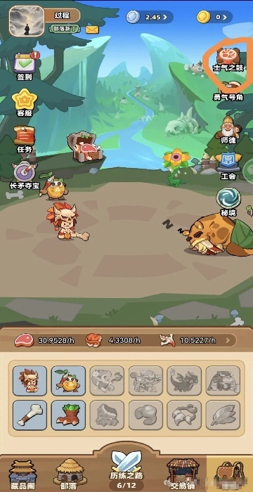 3、进入游戏后,一开始会赠送4个格子,每天需要完成的是将士气之鼓的12次使用次数和勇气号角的10次使用次数都用完,这样就能获得12小时的历练收益了。