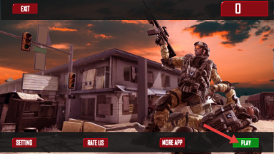 1、在游戏主界面找到【PLAY】按钮并点击,即可进入游戏,开启你的射击战斗冒险之旅。