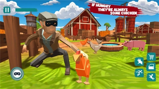 1、采用精致的卡通风格打造,在农场里快速完成盗窃行动,以此成功提升自身的盗窃能力。