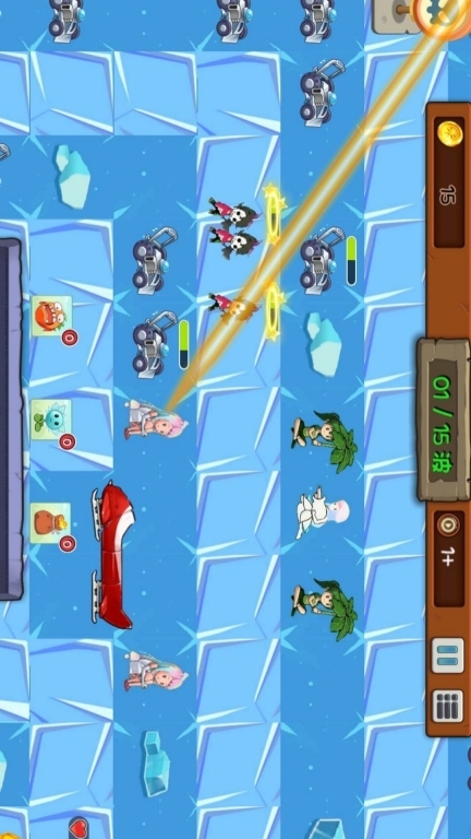 1、留意僵尸的进攻路径,在它们必然经过的路上密集安排植物娘,把火力集中起来,不要分散摆放以免浪费输出。