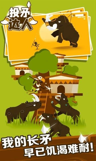 《投矛达人》是一款卡通风格的休闲射击游戏,玩家能够操控角色调整投矛角度,狩猎恐龙及各类大型动物。游戏玩法简易,狩猎数量越多得分越高,还可解锁更多武器。玩家将化身为原始部落的勇士,为获取食物而狩猎猛犸象,游戏里每一关都需要玩家达成对应分数来射击猛犸象,以此顺利通关。