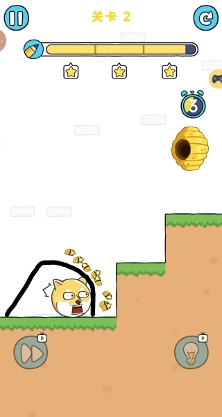3、第二关也是很简单,你只需要画出一条线保护狗狗不被蜜蜂蛰,就能胜利。