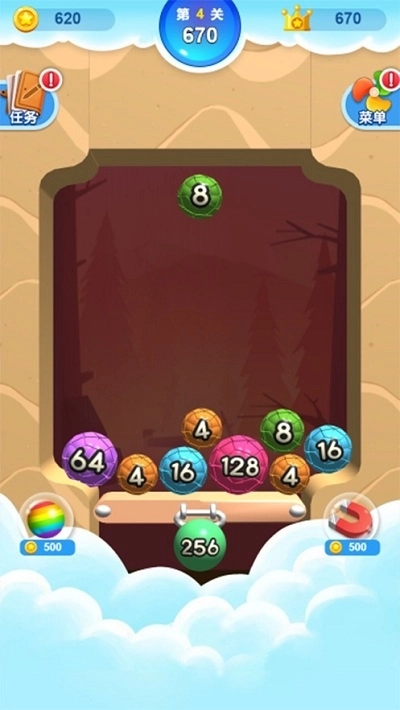 超有意思的3D球球2048,长按拖动球球到合适位置投掷下去,碰到相同数字的球就能合成新的数字球。你能合成2048吗?赶紧来挑战试试!
