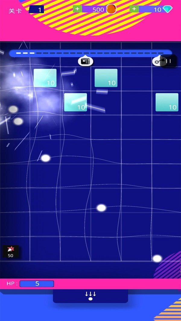 1、经典竖版玩法模式,不断弹球开始消除,将方块全部消除掉。