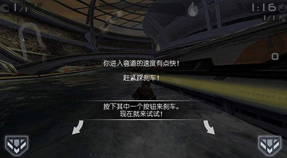 4、进入弯道速度有点快,点左右按纽可以刹车