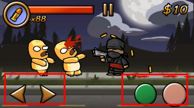 游戏里设有四个按键,它们的功能分别是控制角色左右移动、进行近战攻击以及开枪射击。玩家得灵活运用这些按键来操控角色。