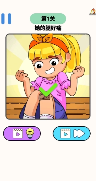 1、进入游戏后,你可以开始闯第一关,你要帮助女孩的伤口止痛。