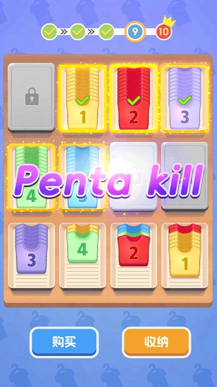 2、操作十分的简单,点击放置相同数字和颜色的衣物,完成之后即可点击购买获取新的衣物。