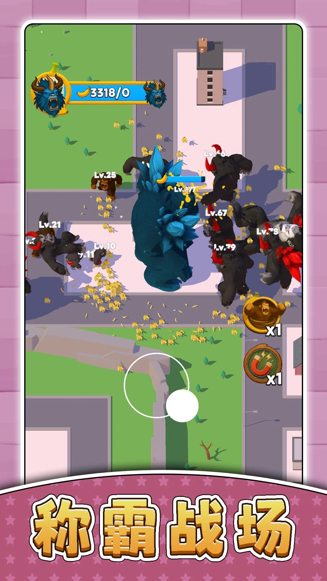 1、控制你的猴子在乐园地图上移动,点击屏幕收集看到的香蕉、水果等各种物资。