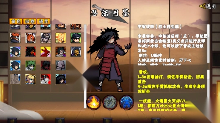 在原有版本基础上,新增了强力角色斑。他的忍法技能是专属密卷“宇智波反弹”:当使用团扇招架敌人攻击时,会恢复1点奥义点,同时触发反弹效果并缩短技能冷却时间;此外,也能通过按下普攻键主动释放5段普通攻击(5a)。