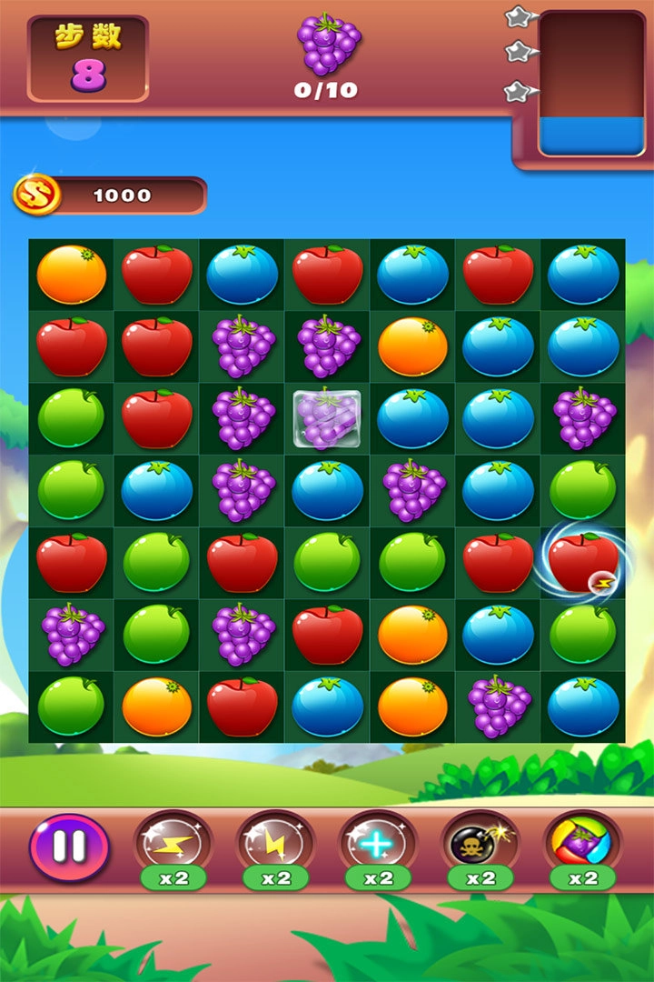 1.在《疯狂水果收集》游戏中,玩家只需把三种不同颜色的果子连成一条直线,就能触发消除效果并获得分数。具体操作是用一根简单的线,将三个或三个以上相同的果子连接起来即可。