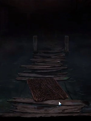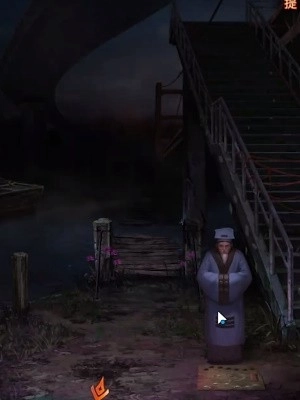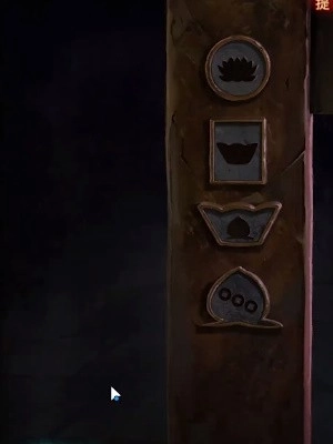 3、返回初始位置,点击栅栏,根据天上飘落的纸钱调整栅栏上的图案至如下图所示状态,即可获得铜渔网。
