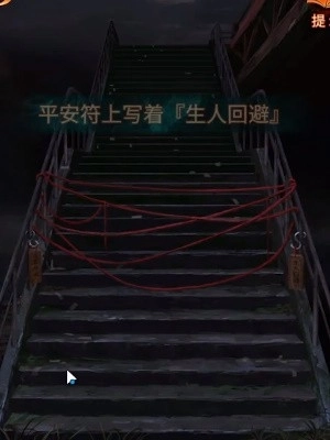 12、来到被红绳挡住的楼梯前,将平安符挂在左侧缺失的位置。