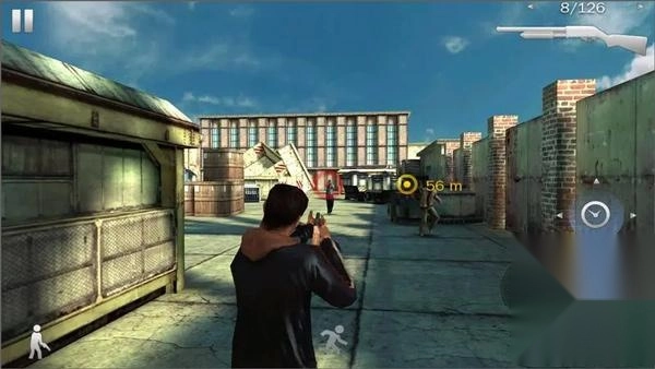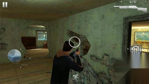 7、游戏屏幕左下方有个持枪小人图标,它能切换人物状态,主要用于站姿和蹲姿的转换。这在躲避敌人攻击时十分实用。另外,玩家能看到图中有个黄色光圈,那里是可执行任务的区域,比如爬窗、踹门等操作都能在这儿完成。