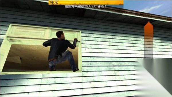 8、游戏里还会出现如下攀爬场景:玩家只需操控角色跳上房檐后进行滑动操作——左右滑动对应左右移动,上下滑动对应上下移动。这一操作在任务模式的部分场景中会派上用场。
