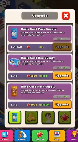 游戏内设多种成就目标,包括进货数量、货架升级、卡牌收集等,完成这些挑战不仅能获得丰厚奖励,还能提升整体经营效率。
