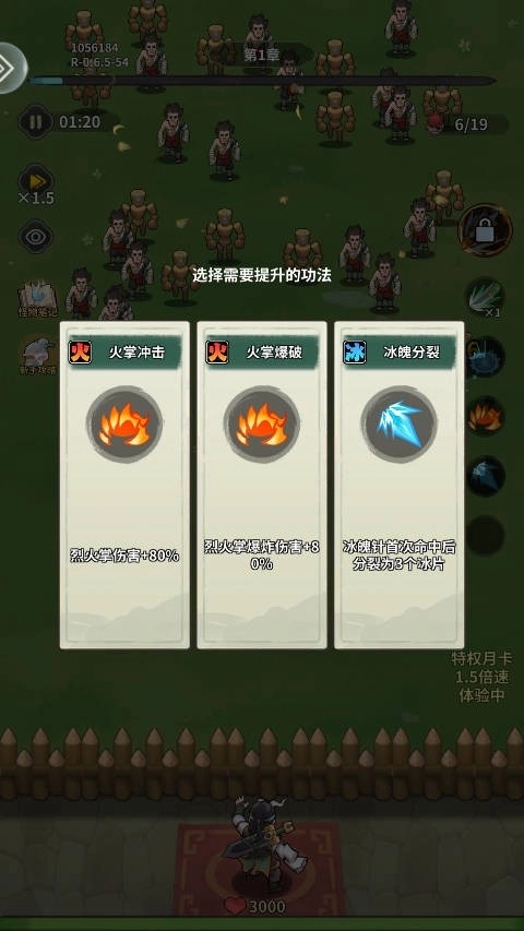 1、当怪物血量偏低时,建议把一到两个技能升级到高级,这样能做到一击秒杀,进而更轻松地通过前期关卡。